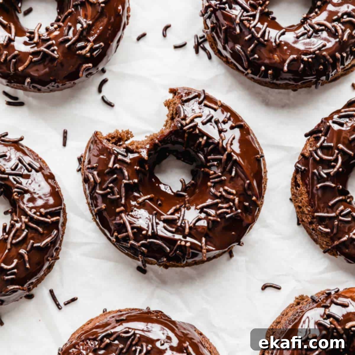 Prepare to fall in love with these incredible **baked chocolate doughnuts**! Far from your average fried doughnut, these delights feature a wonderfully moist and tender chocolate cake base, elevated by a luxurious dip in a rich chocolate ganache, and finished with a scattering of cheerful chocolate sprinkles. They’re not just doughnuts; they’re a miniature celebration of pure chocolate bliss, perfect for any occasion or simply as a well-deserved treat.